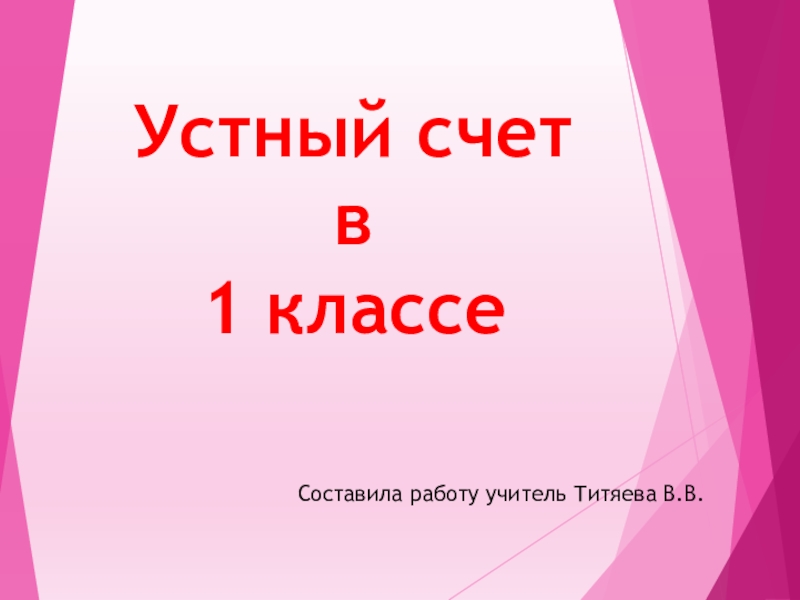 Устный счет в  1 классеСоставила работу учитель Титяева В.В.