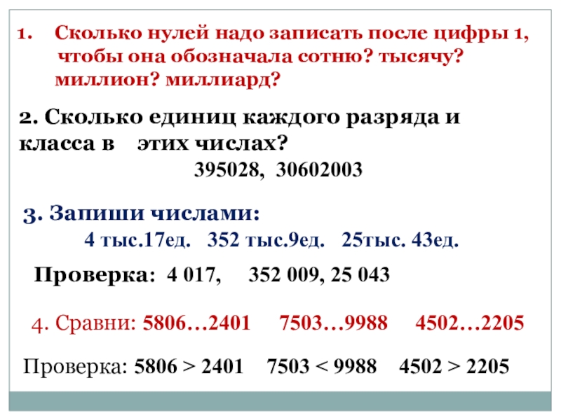2. Сколько единиц каждого разряда и класса в этих числах?