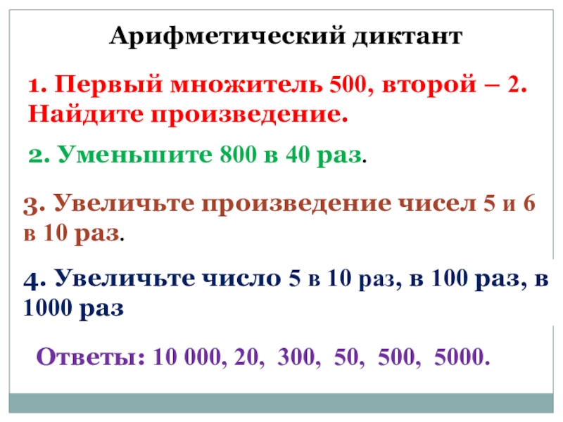 Ответы: 10 000, 20, 300, 50, 500, 5000.