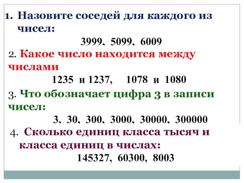 4. Сколько единиц класса тысяч и класса единиц в числах: