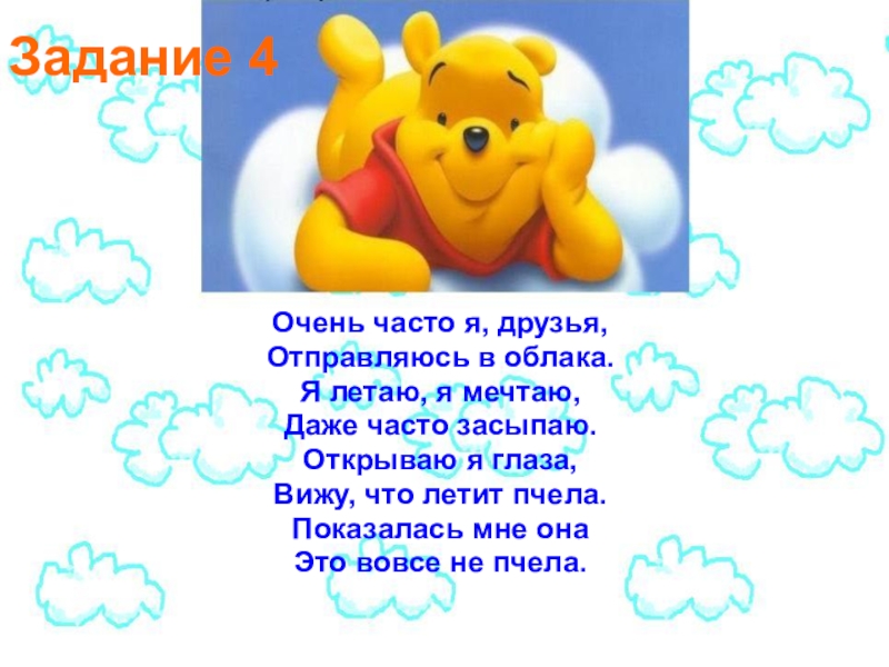 Меня зовут Винни Пух. Хотите со мной отправиться в путешествие? А трудностей не боитесь? В пути нас ждут трудные задания. Вы готовы?
