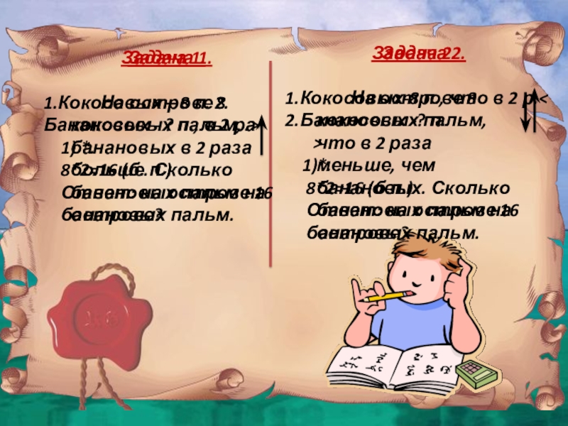 1.Кокосовых – 8 п. 2.Банановых - ? п., в 2 р.>