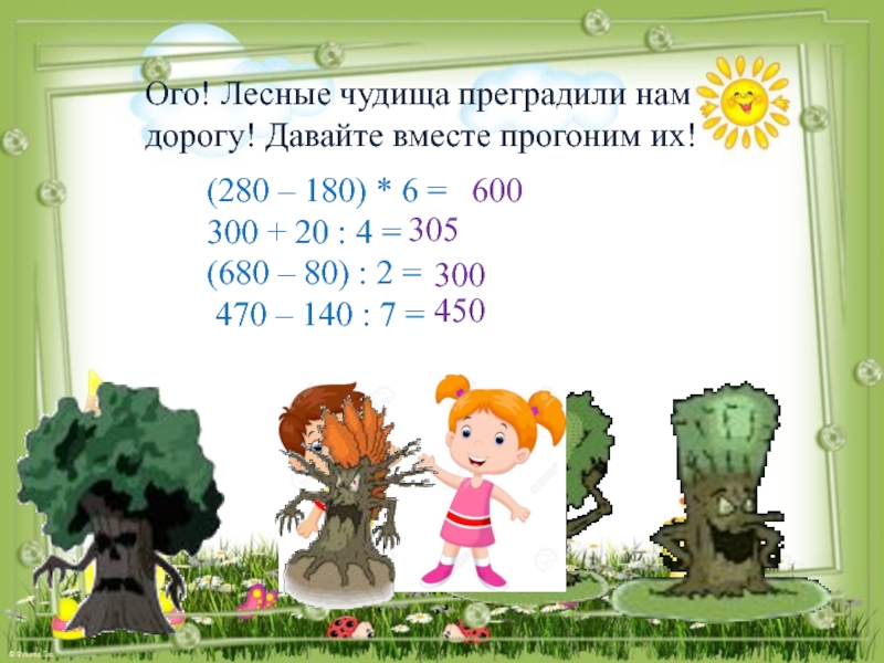Ого! Лесные чудища преградили нам дорогу! Давайте вместе прогоним их!