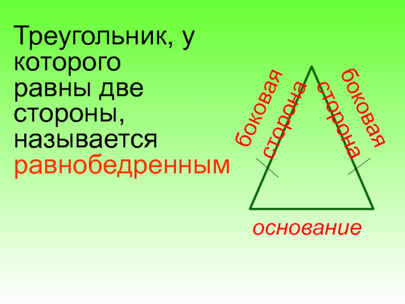 Треугольники , у которых равны две стороны, называются равнобедренными