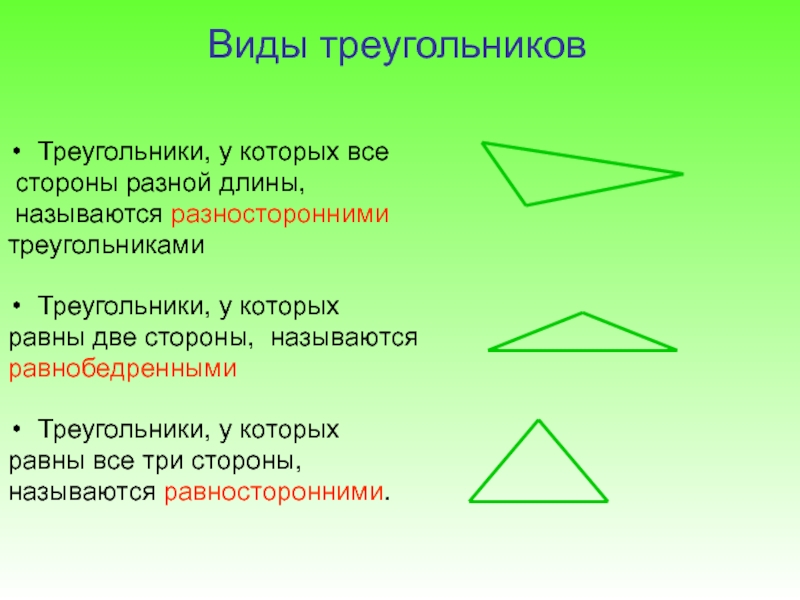 Треугольники, у которых все стороны разной длины, называются разносторонними треугольниками
