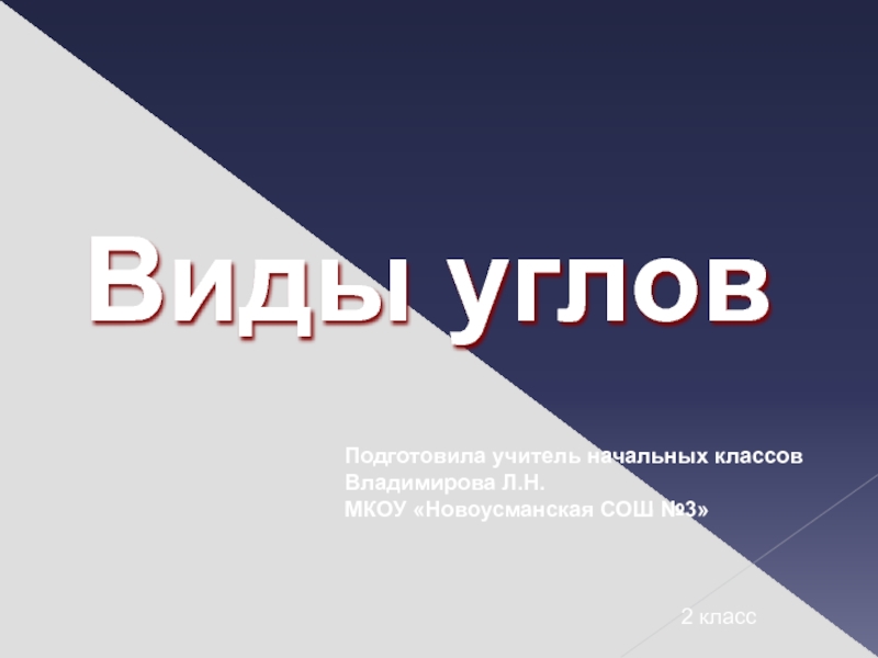 Виды углов2 классПодготовила учитель начальных классовВладимирова Л.Н.МКОУ «Новоусманская СОШ №3»