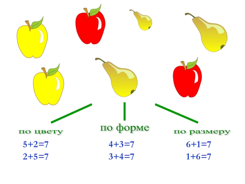по цвету по форме по размеру 5+2=72+5=74+3=73+4=76+1=71+6=7