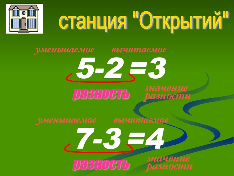 Презентация, доклад по математике Вычитание. Название компонентов и результата действия (1 класс)