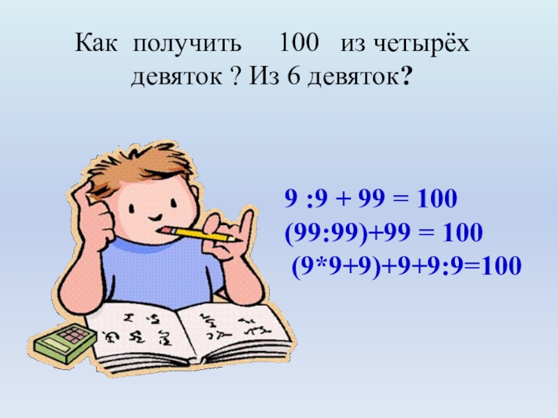 (9*9+9)+9+9:9=100