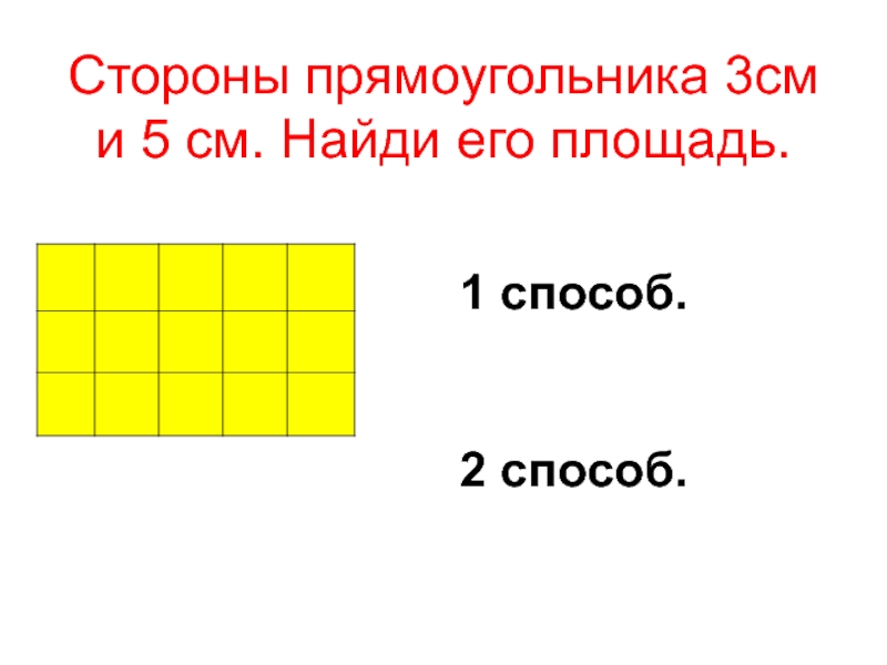 Стороны прямоугольника 3см и 5 см. Найди его площадь.1 способ.2 способ.