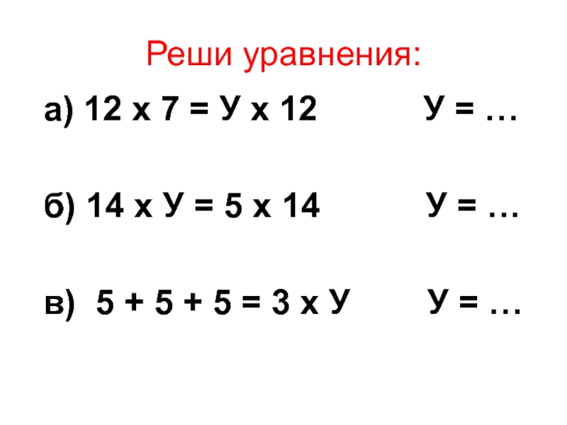 Реши уравнения: а) 12 х 7 = У х 12      У =