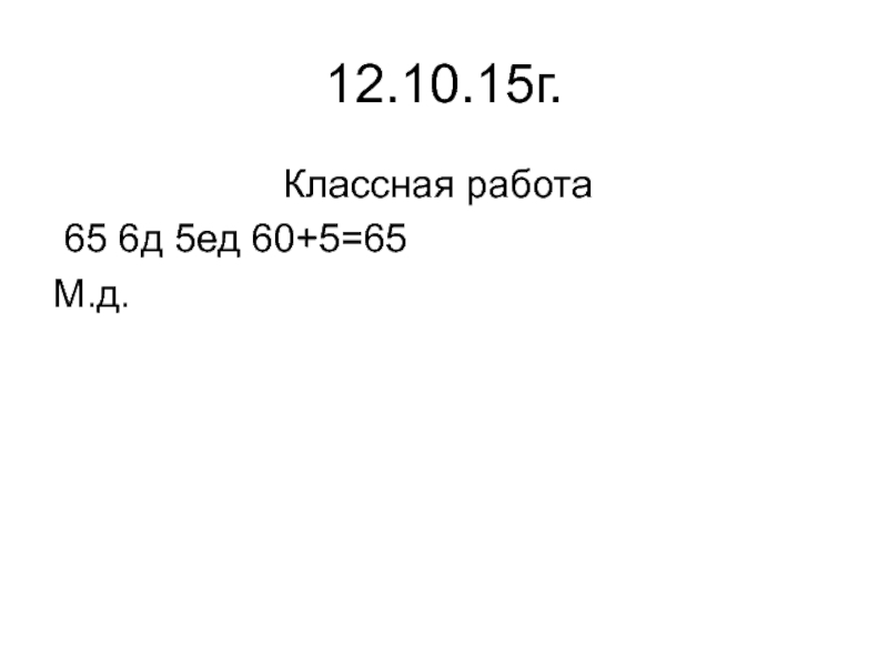 12.10.15г. Классная работа 65 6д 5ед 60+5=65 М.д.