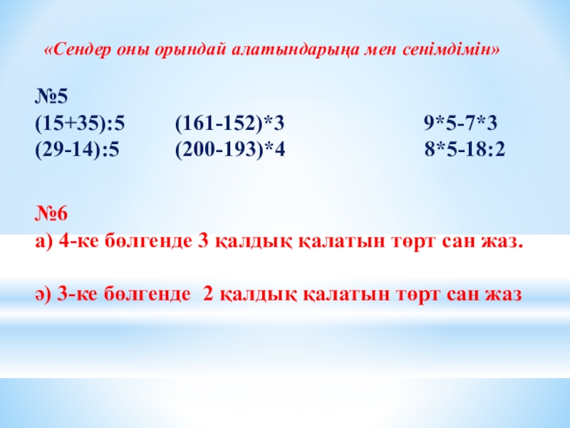 а) 4-ке бөлгенде 3 қалдық қалатын төрт сан жаз.