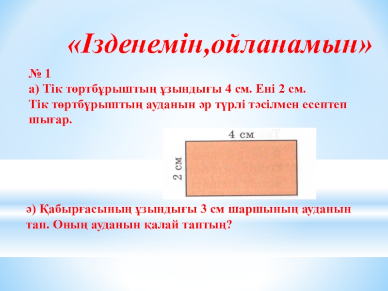 ә) Қабырғасының ұзындығы 3 см шаршының ауданын тап. Оның ауданын қалай таптың?