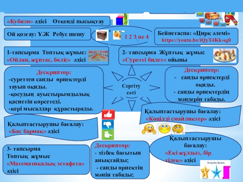 Барлық оқушылар: Суреттен санды өрнектерді тауып оқиды, жазады. Қосынды және айырмаларды ажыратады.