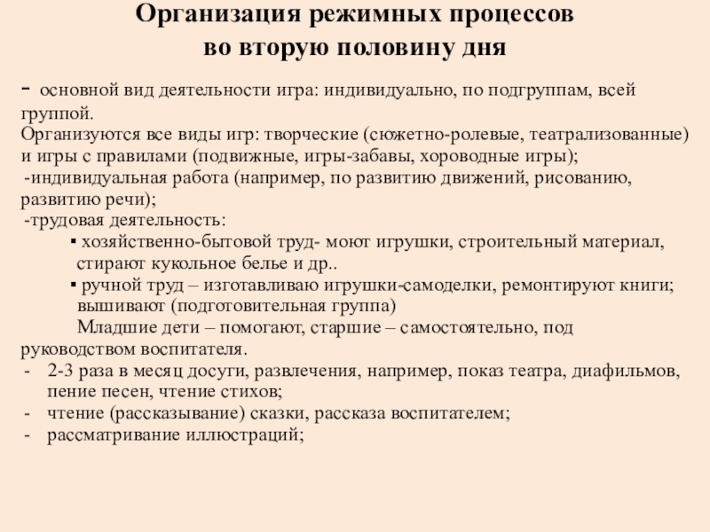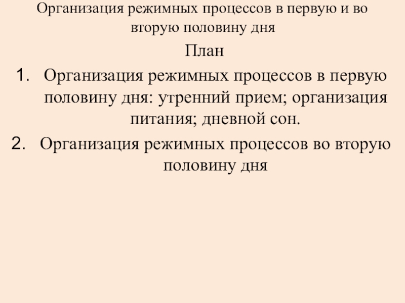 Слайд 1Организация режимных процессов в первую и во вторую половину дня