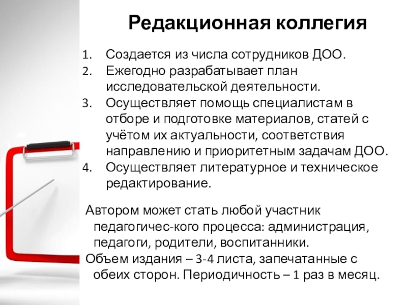 Объем издания – 3-4 листа, запечатанные с обеих сторон. Периодичность – 1 раз в месяц.