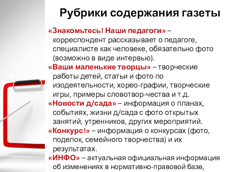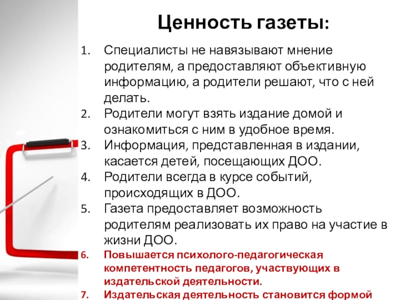 Газета предоставляет возможность родителям реализовать их право на участие в жизни ДОО.