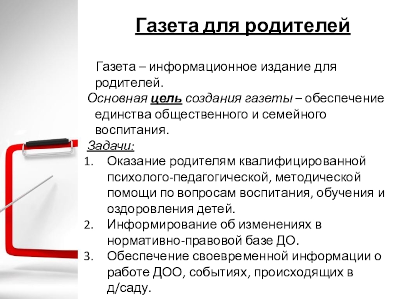 Основная цель создания газеты – обеспечение единства общественного и семейного воспитания.