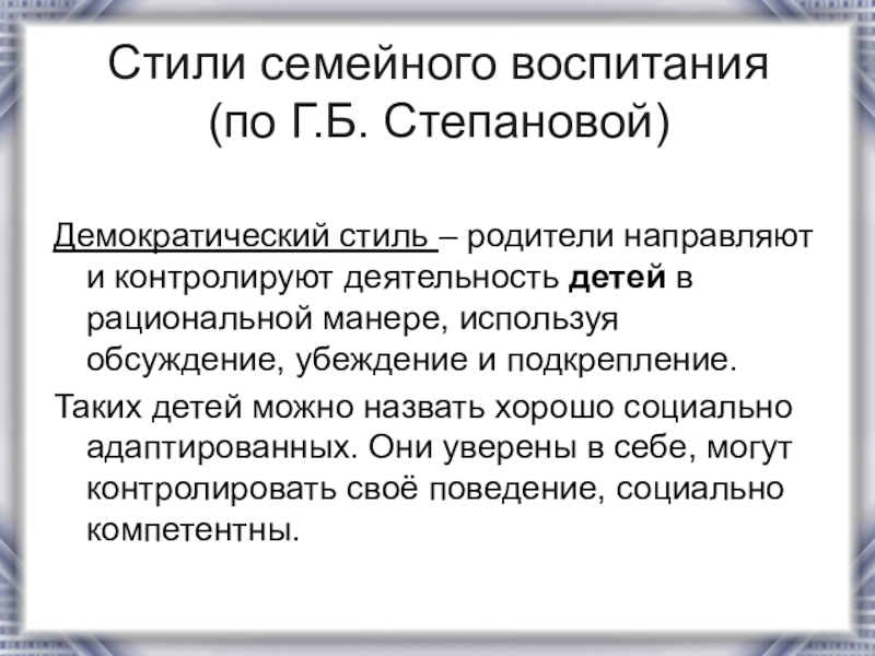 контролируют деятельность детей в рациональной манере, используя обсуждение, убеждение и подкрепление.