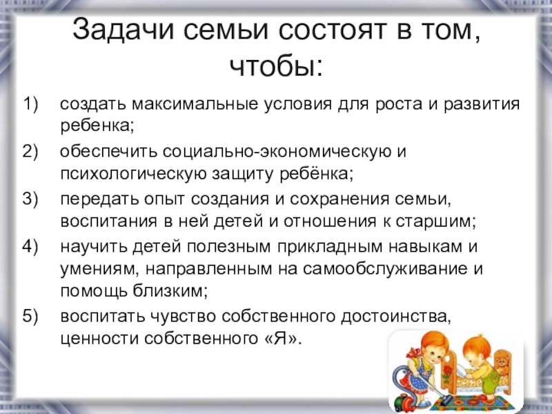 Слайд 6Задачи семьи состоят в том, чтобы: