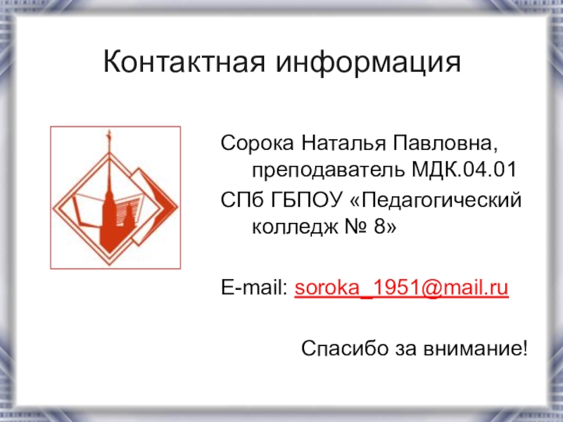 Сорока Наталья Павловна, преподаватель МДК.04.01