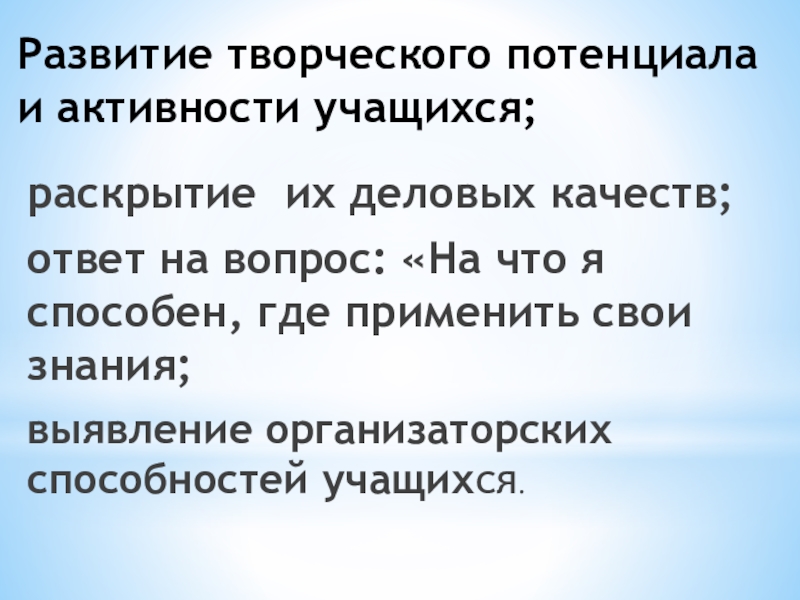 проектной деятельности как средство раскрытия потенциала личности учащихся