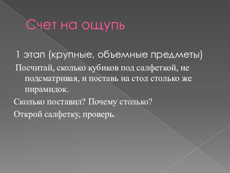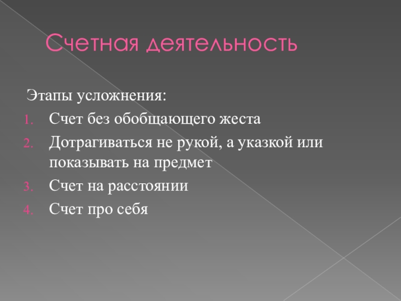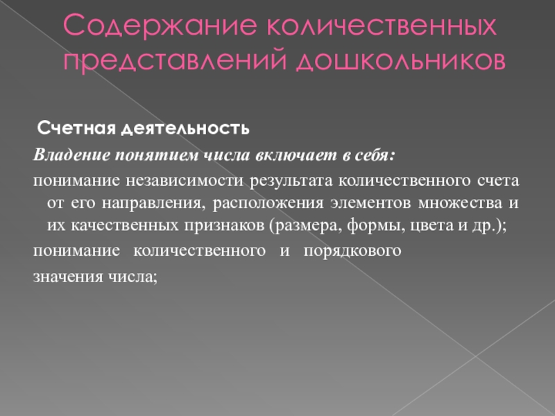 результата количественного счета от его направления, расположения элементов множества и их качественных признаков (размера, формы, цвета и др.);