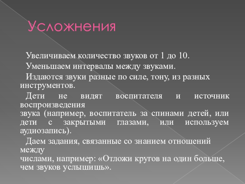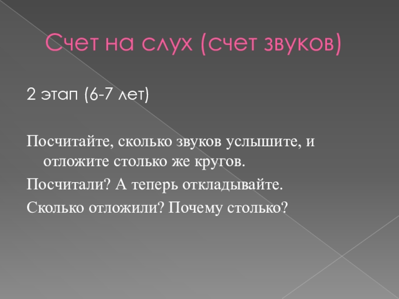 числами, например: «Отложи кругов на один больше, чем звуков услышишь».