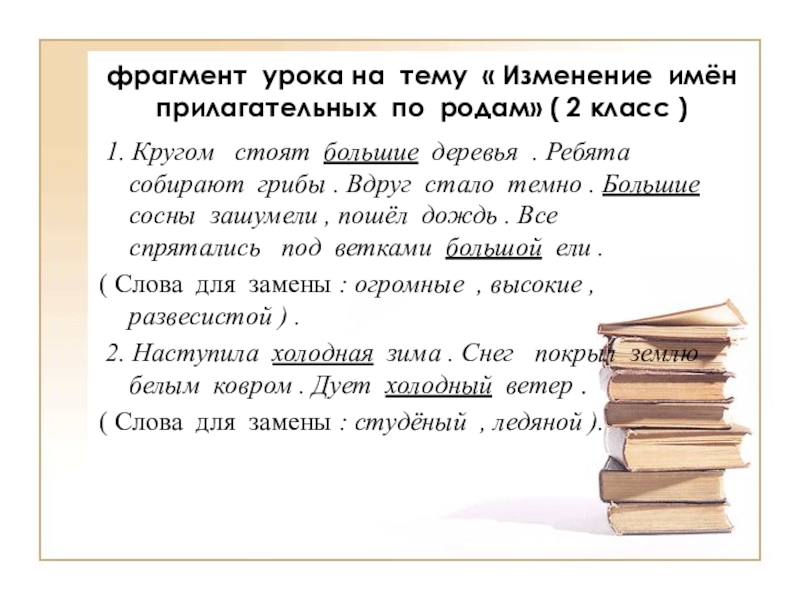 Слайд 25фрагмент урока на тему « Изменение имён прилагательных по родам» (