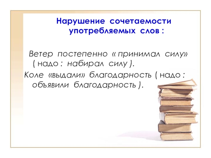 Слайд 6 Нарушение сочетаемости употребляемых слов :