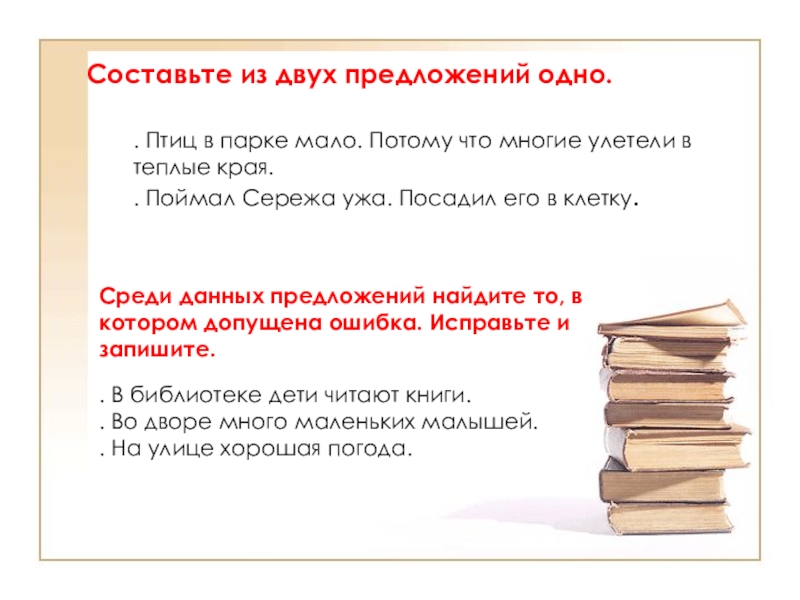 Слайд 29Составьте из двух предложений одно.