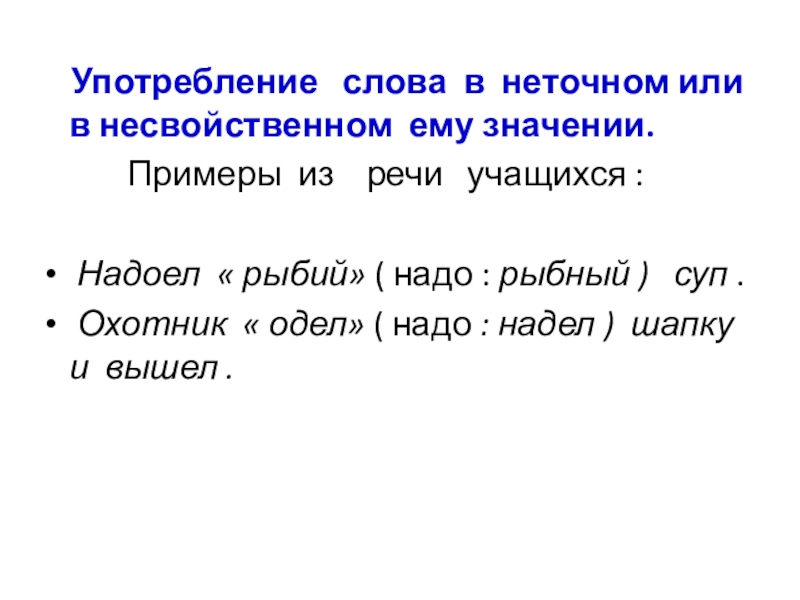Слайд 5 Употребление слова в неточном или в несвойственном ему