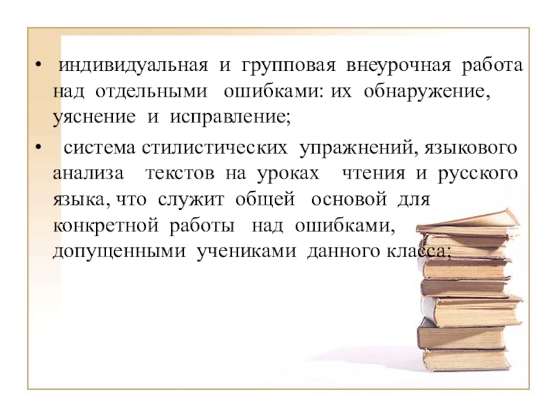 система стилистических упражнений, языкового анализа текстов на уроках чтения и русского языка, что служит общей основой для конкретной работы над ошибками, допущенными учениками данного класса;