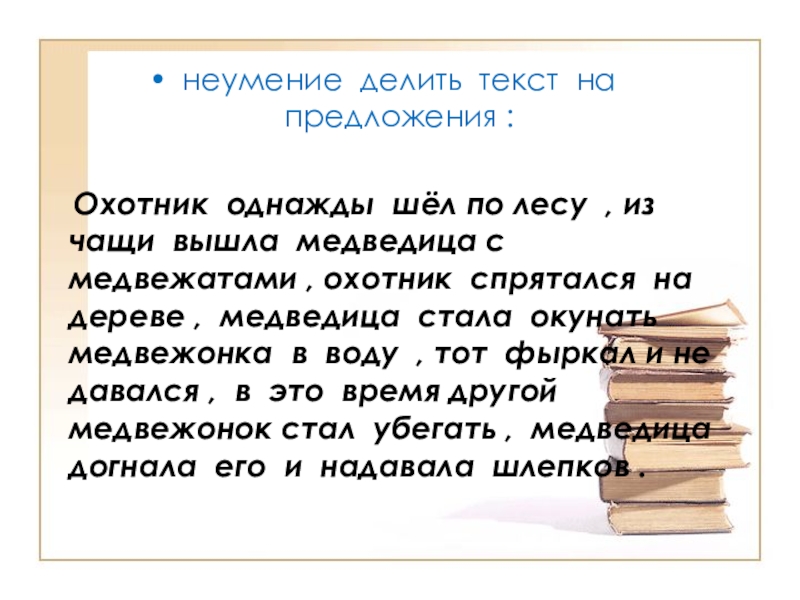 Слайд 17неумение делить текст на предложения :