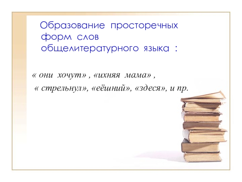Слайд 9 Образование просторечных форм слов общелитературного языка :