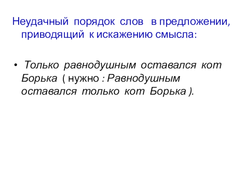 Слайд 12Неудачный порядок слов в предложении, приводящий к искажению смысла:
