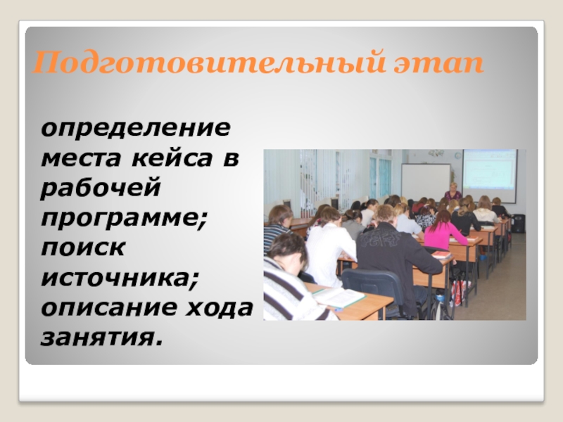 Подготовительный этапопределение места кейса в рабочей программе;поиск источника;описание хода занятия.