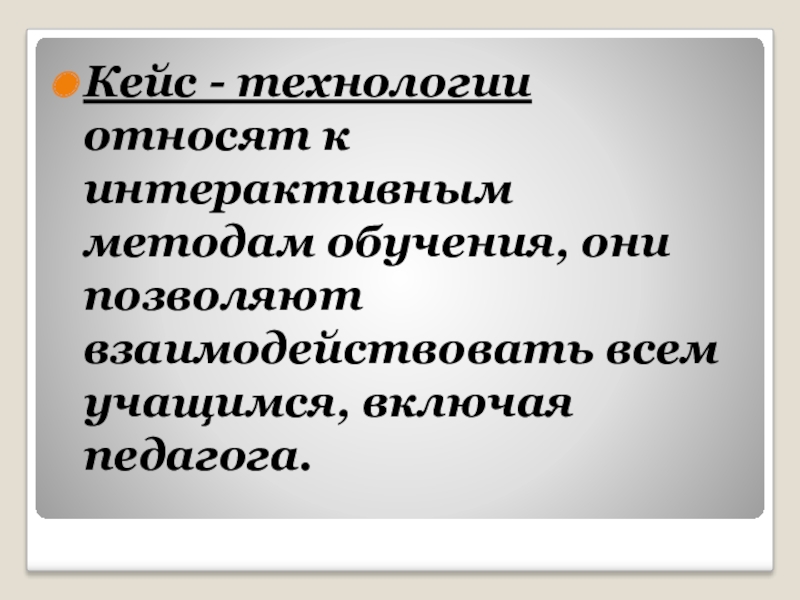 Кейс - технологии относят к интерактивным методам обучения, они позволяют взаимодействовать всем учащимся, включая педагога.