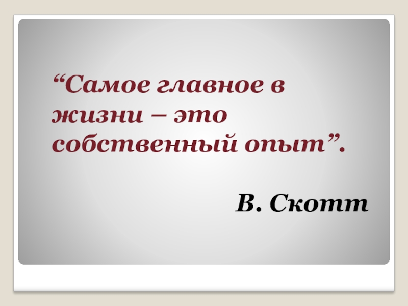 Слайд 17“Самое главное в жизни – это собственный опыт”.