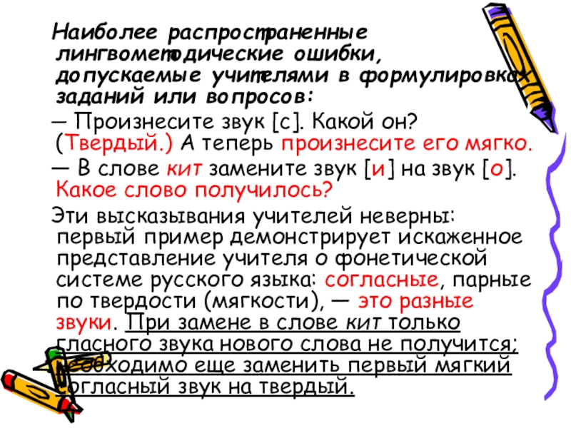 Слайд 8Наиболее распространенные лингвометодические ошибки, допускаемые учителями в формулировках заданий или вопросов: