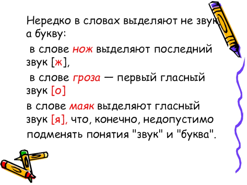 Слайд 9Нередко в словах выделяют не звук, а букву: