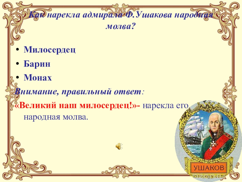 Слайд 21Как нарекла адмирала Ф.Ушакова народная молва?