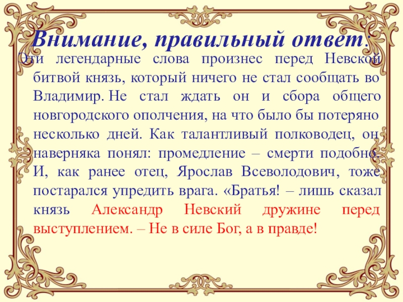 Эти легендарные слова произнес перед Невской битвой князь, который
