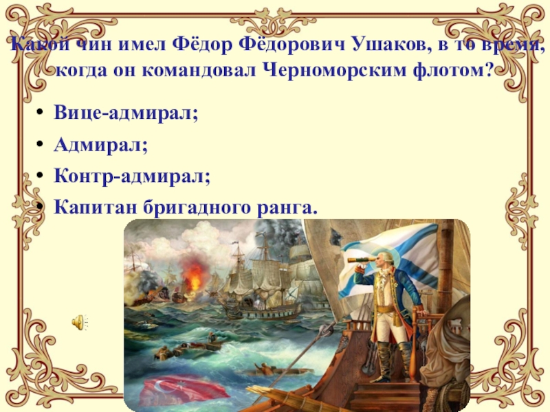 Слайд 17Какой чин имел Фёдор Фёдорович Ушаков, в то время, когда он
