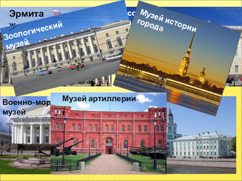 ЭрмитажРусский музейВоенно-морской музейКунсткамераЗоологический музейМузей истории городаМузей артиллерии