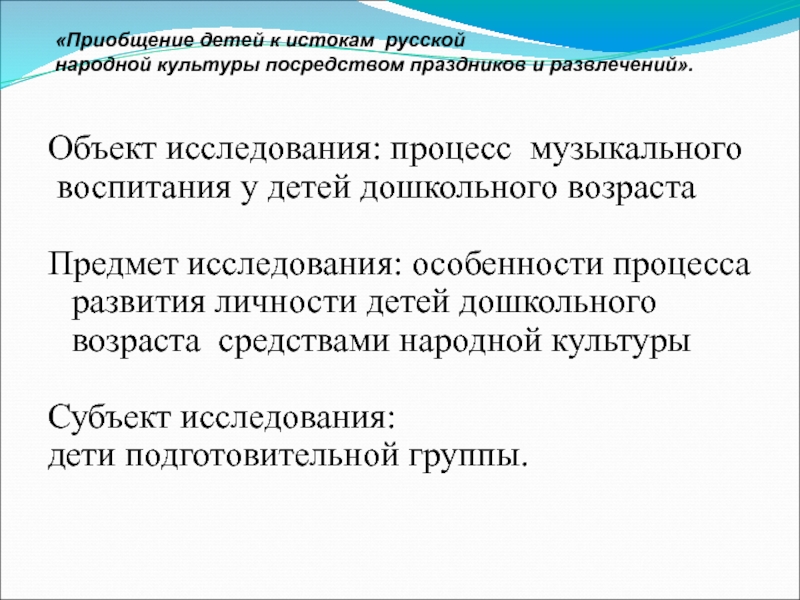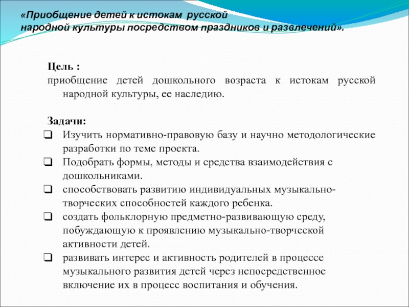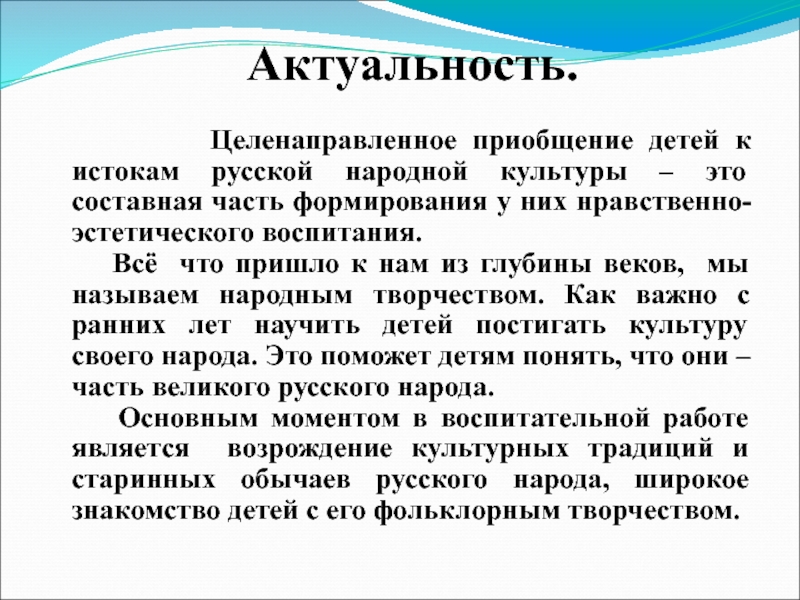 «Приобщение детей к истокам русской
