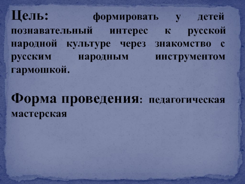 Слайд 2Цель: формировать у детей познавательный интерес к русской народной культуре через