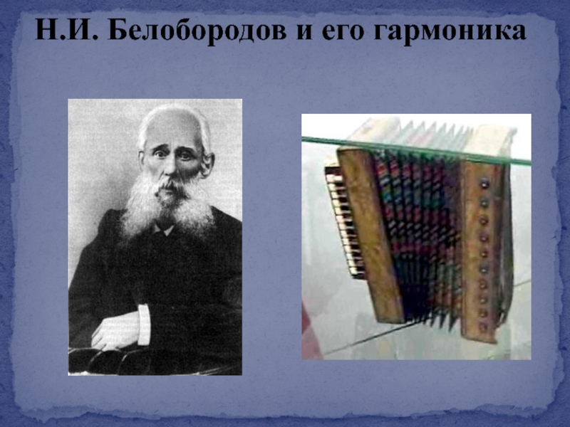 Слайд 10Н.И. Белобородов и его гармоника