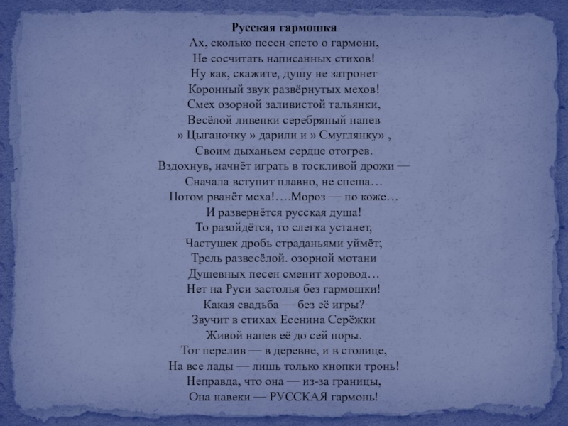 Слайд 15Эй, Гармонь!